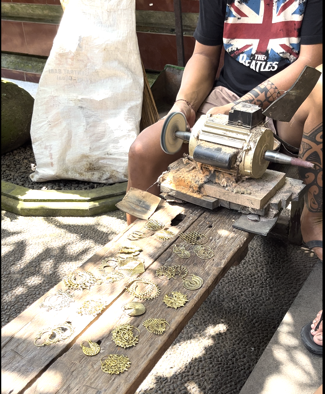 Chaque pièce a été réalisée par un artisan sculpteur et bijoutier d'un petit village au nord d'Ubud, non loin des grandes rizières de Tegalalang.